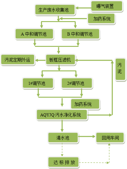 该类污水具有较强的酸性,同时在做不同的产品时污水的颜色和污染物会有变化,因此污水收集池起到收集调节污水的作用,使污水水质更加均匀。