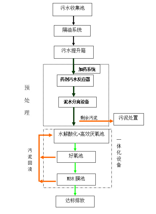 本公司根据实际情况设计本方案。本工程采用的方案,即“隔油+物化预处理处理+水解酸化+高效生化+MBR膜”的工艺,其理由如下: